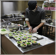 - ご入居者様の健康を考えて、バランスのとれた食事を提供いたしております。管理栄養士が作る献立によりバランスのとれた食生活を実現しています。各フロアがユニット使用になっているため、温かい雰囲気でお食事をして頂けます。